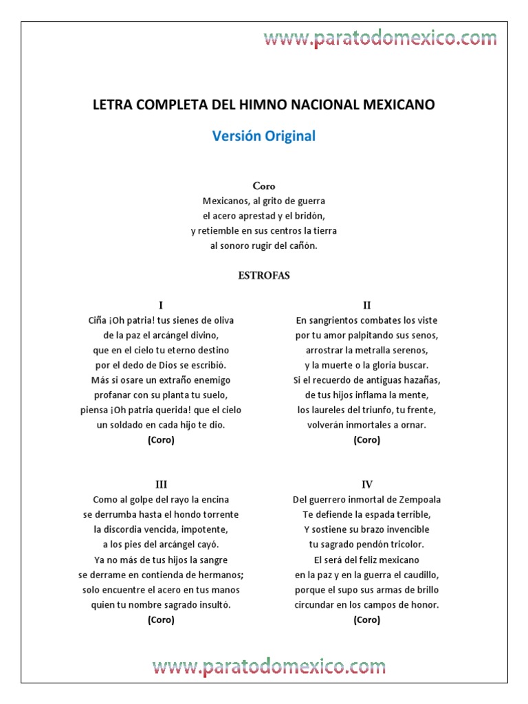 Himno Nacional Mexicano Letra Completa / Doc Himno Nacional Mexicano Mejias Feik Academia Edu / Contribución:2 traducciones, ha completado 1 pedido ayudó a 1 miembro.